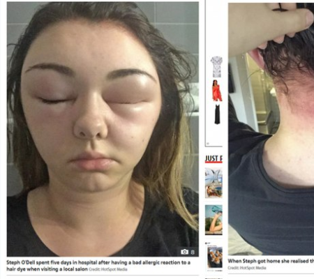 A britânica Steph O’Dell queria mudar o visual para comemorar o aniversário da irmã, Amber, em 2015. Como as duas iriam viajar para Amsterdam, Holanda, ela decidiu tingir as madeixas em um salão local — mas o resultado não saiu como esperado, já que a tintura de cabelo causou uma reação alérgica severa e ela ficou com o rosto inchado. As informações são do IG.