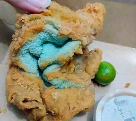 Uma mulher abriu um de seus aplicativos de delivery para pedir um frango frito no restaurante Jollibee na cidade de Taguig, nas Filipinas. Quando chegou a encomenda, ela tentou cortar o que deveria ser o frango, mas não conseguiu. Quando abriu a massa com as mãos, descobriu que se tratava de uma toalha empanada.
