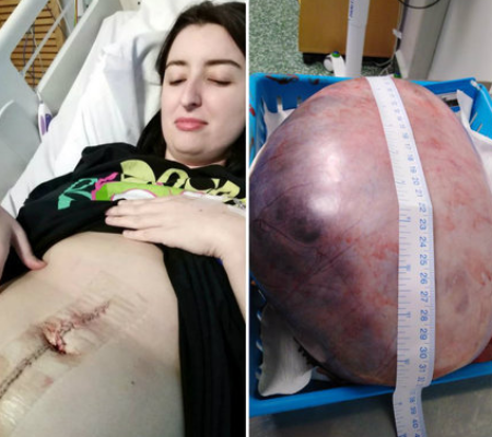 Após constatada a existência do tumor, os médicos calcularam que ele deveria ter 20 cm e cerca de 10 kg. Após a cirurgia perceberam que estavam errados! Era um tumor em forma de melancia, com 40 cm de largura e mais de 13 kg. "Me sinto muito mais leve agora que ele foi retirado. Estou ótima", afirmou em entrevista ao jornal Mirror.
