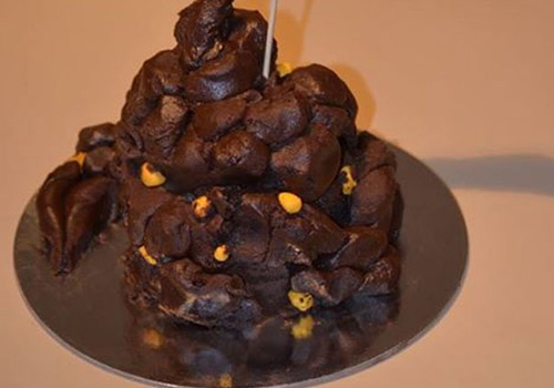 Uma mulher foi surpreendida ao receber o bolo de sua festa de noivado. Após tirar o embrulho, ela percebeu que o produto tinha forma de fezes.