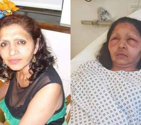 Um dia depois, mesmo com o uso do medicamento para a alergia, os olhos de Narinder estavam tomados pelo inchaço e ela mal conseguia abri-los. “Havia secreções saindo da minha cabeça também. Então, acabei pedindo uma ambulância para o hospital novamente e a unidade de emergência do Hospital Ealing me recebeu, pois eu não conseguia mais enxergar”.