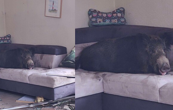 Uma alemã foi surpreendida ao chegar em casa e vê-la toda revirada. Amedrontada, acreditando ter sido assaltada, entrou na sala e encontrou o causador da bagunça: um javali.