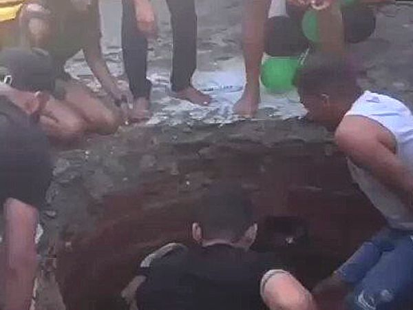 Ao som de “tem cabaré essa noite”, várias mulheres dançam pulando abraçadas e piso acaba não aguentando o peso. Resultado: caíram todas em uma fossa cheia de cocô.