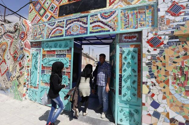 A obra, que fica no bairro de al-Mazzeh, possui mais de 720 m², e é composto por diversos tipos de materiais reaproveitados.