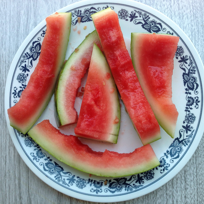 Digo mais, nem é preciso ser casca grossa: como qualquer escudo, ao seu modo toda casca é firme. A firmeza é conferida por uma belíssima trama de fibras. Mas, como eu aposto que você já sabe dessa história de que as cascas têm fibras aos montes, vou parar de falar disso para mostrar aspectos inusitados, que podem despertar a sua vontade de morder as sobras de uma suculenta fatia de melancia.