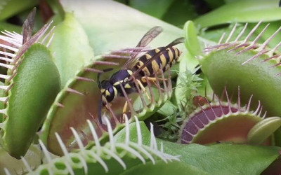 Mas a dioneia, uma famosa espécie de planta carnívora, sabe muito bem lidar com essas vespas. Com armadilhas muito bem desenvolvidas , elas atraem as vespas e as consomem.