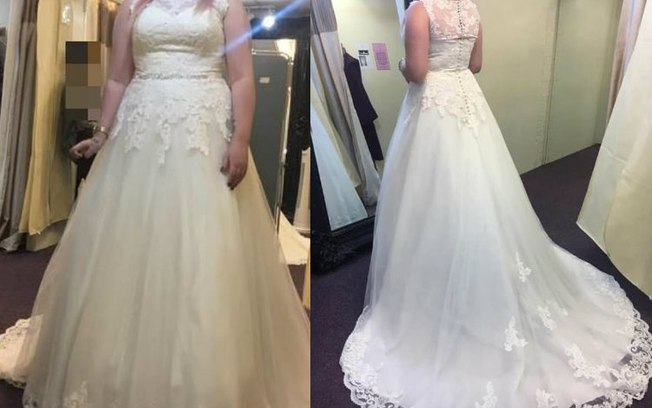 A britânica conta que pagou 899 euros na peça (R$ 3.810, aproximadamente), mas que está pedindo apenas 450 euros (R$ 1,9 mil). “O vestido é tamanho 18 [o equivalente a 46 no Brasil], cabe em pessoas que usam 14/16 [42/46] e não teve alterações feitas, ao contrário da minha vida. Eu recomendaria uma boa limpeza a seco para se livrar de toda a má sorte que vem com ele”, afirma.