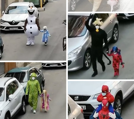 Durante o isolamento, um homem de 34 anos de Puertollano, na Espanha, decidiu descer fantasiado de Olaf (o boneco de neve de Frozen) para levar o lixo da casa onde mora com a mulher e dois filhos. Ele fez isso por volta das 20h quando os vizinhos iam para as janelas aplaudir os profissionais da saúde do país, um dos mais atingidos pela pandemia de Covid-19 na Europa.
