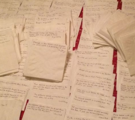 Garth Callaghan foi diagnosticado com câncer terminal e passou seus dias tendo a consciência de que não veria a sua família por muito tempo. Em novembro do ano passado, ele decidiu intensificar os escritos pensando à longo prazo. O pai em câncer terminal escreveu mais de 800 bilhetes para sua filha, com o objetivo de manter a tradição do guardanapo mesmo se ele já não estiver presente em vida.