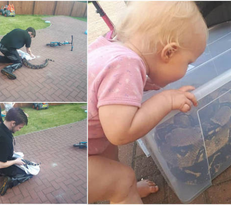 Bruce Baker tomou o susto de uma vida ao encontrar Willow, sua filha de 1 anos, ao lado de uma letal cobra Jiboia-constritora de 2 metros, no jardim de sua residência em Innerleithen, na Escócia. Por sorte, ele conseguiu resgatar a pequena e controlar a situação. As informações do R7.