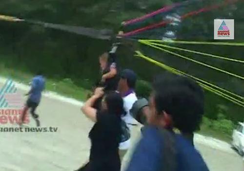 Toda a cena foi filmada. Membros da empresa Malabar Adventure Sports Society colocaram o colete em Niya Nizam, que se mostrava em pânico com medo.