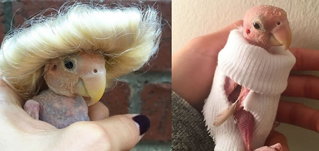 Um periquito chamado Rhea está ganhando bastantes fãs na internet após ter tido fotos suas divulgadas na web. A ave sofre de uma doença rara que faz com que ela perdesse todas as penas.