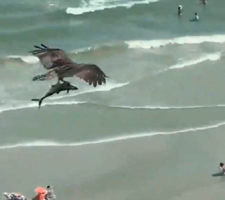 Um vídeo postado no Twitter está deixando muita gente boquiaberta. Nas imagens, registradas em Myrtle Beach (Carolina do Sul, EUA), um pássaro de grande porte é visto voando com o que parece ser tubarão, que teria sido tirado por ele do mar.Informações do Extra.