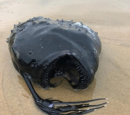 Não se sabe como o peixe assustador foi parar na areia, pois esta é uma espécie que vive a mais de 900 metros de profundidade no oceano. Os pesquisadores da área afirmam ser ainda mais raro encontrar um exemplar chegando à superfície intacto, como é o caso desta fêmea.