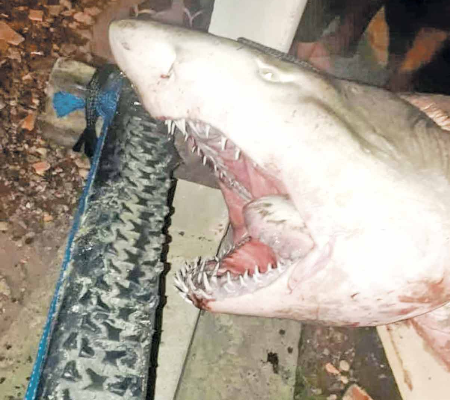 Um tubarão pesando mais de 150 kg foi capturado em uma rede em Guarujá, no litoral de São Paulo. De acordo com banhistas, pescadores pegaram o animal em uma rede de pesca e ele já estava quase morto quando chegou à praia.