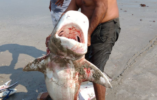 Pescadores conseguiram capturar, nesta sexta-feira (29), um tubarão de aproximadamente três metros de comprimento, da espécie ‘Tigre’ na Praia do Coqueiro em Luís Correia, litoral do Piauí.