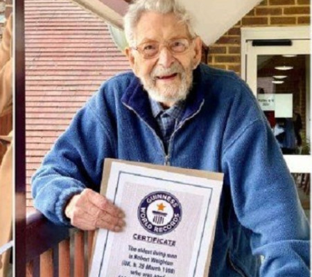 O britânico Robert Weighton foi coroado na terça-feira (31/3) como o homem mais velho do mundo, com 112 anos. Por causa da pandemia de coronavírus, o tradicional encontro entre represente do Livro Guinness do Recordes com os recordista teve que ser suspenso. Na casa de repouso em que vive no Reino Unido Robert recebeu o certificado a distância. As informações são do Extra.