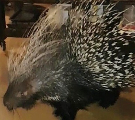 Na África do Sul, um homem tomou um grande susto quando se deparou com um porco-espinho enorme andando pela sua cozinha.