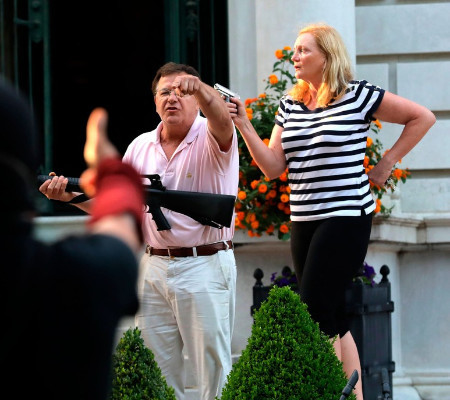 Segundo o jornal The Guardian, o casal teria sido identificado como Mark e Patricia McCloskey. Dessa forma, tudo que sabemos sobre eles, é que eles são advogados e sócios de um escritório de advocacia que leva o sobrenome dos dois. Além disso, eles também são donos da mansão que aparece no vídeo.