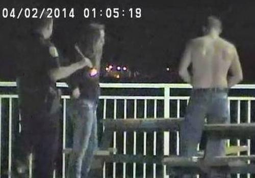 Depois de cortar o barato do casal, os policias os levaram em cana por conduta indecente e intoxicação desordenada.