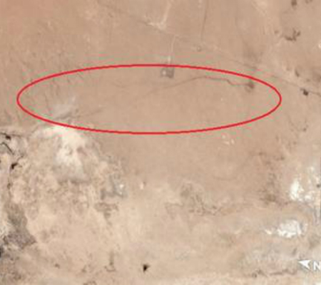 A área fotografada por satélite fica no deserto do Monjave, perto do epicentro do terremoto. Várias estradas, também nas imediações do epicentro, apresentaram rachaduras. Algumas delas estão total or parcialmente bloqueadas em pontos mais danificados.
