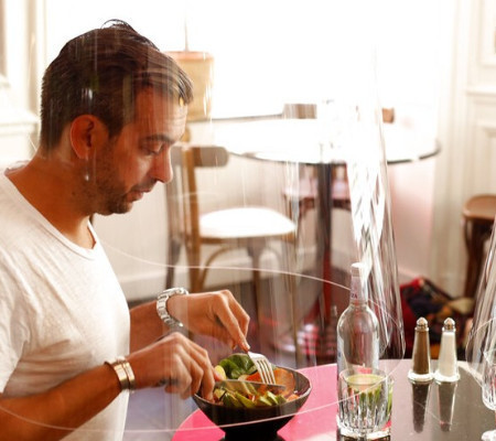 Mathieu Manzoni, responsável pelo restaurante, informou a agência que "os escudos de plástico são uma solução bonita e poética para restaurantes que temem que o distanciamento social possa reduzir sua capacidade pela metade".