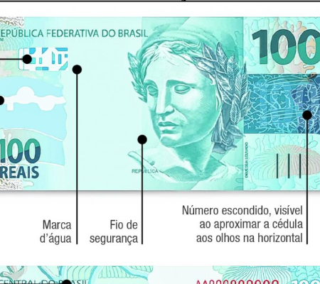 Primeiramente, a marca d’água é o detalhe mais importante para se observar. No entanto, antes de tudo saiba que cada cédula é de uma forma, pois cada uma é composta por seu animal nativo e a numeração correspondente ao valor da nota nova. Além disso, o valor da nota também aparece na marca d’água.