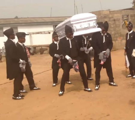 Profissão comum em Gana, o trabalho dos carregadores de caixão dançarinos virou meme internacional. A imagem de vários homens dançando enquanto carregam um caixão ao som de música eletrônica tem sido colocada em vídeos antes que algum desastre iminente, como uma grande queda ou um susto, aconteça de fato. As informações são do UOL.