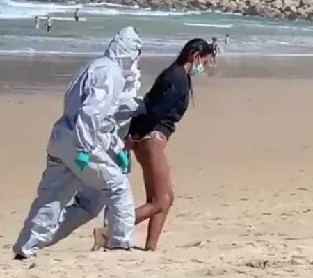 Agentes com roupas especiais levaram vários minutos para convencer a salva-vidas, que não teve o nome revelado, a sair do mar. Na areia, a surfista mostrou uma atitude "desafiadora", conforme relato de testemunhas. Depois, ela foi levada presa por "desobediência grave".