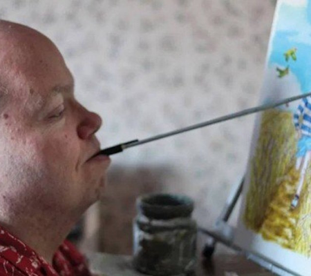 Sem poder mexer os braços, inglês desenha livro usando a boca