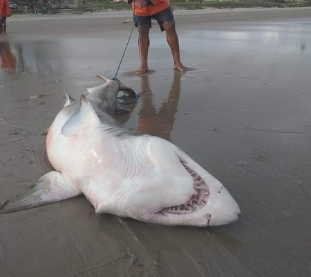 A pesca ocorreu no dia 20 de novembro e, logo após capturarem o tubarão, os pescadores postaram nas redes sociais algumas fotos do animal já na areia da praia. O tubarão é da espécie cação-mangona, popularmente conhecido como tubarão-touro, também conhecido no litoral de São Paulo como tubarão-cinza.