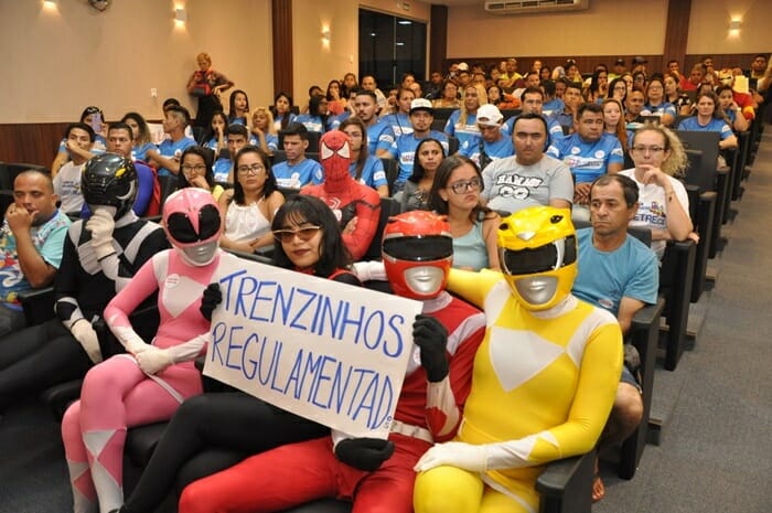 Os trabalhadores foram vestidos a caráter e proporcionaram uma cena hilária em plena Câmara. O público presente ostentou cartazes pedindo a criação de regras para a atividade e defendendo os trenzinhos como “diversão saudável para toda a família”.