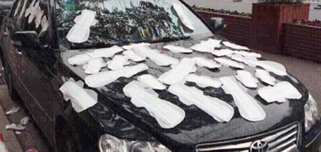 Suposta traição faz mulher cobrir carro do namorado com absorventes
