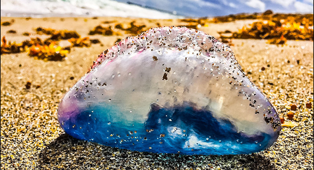 Physalia physalis, também conhecida como caravela-portuguesa, possui um flutuador colorido, parecendo um balão inflado de cor azulada. Os tentáculos distendidos podem atingir até a 10 m.