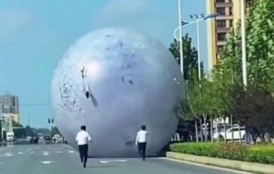Em 2016, uma cena parecida se deu em Fuzhou (China). A passagem de um tufão fez uma Lua inflável se soltar das amarras e rolar avenida abaixo, causando estragos em carros estacionados.