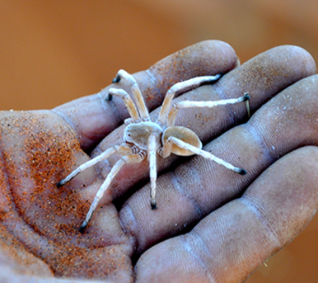 Felizmente mais uma aranha que vive bem longe dos brasileiros, a aranha de areia é encontrada em áreas desérticas e pouco habitadas. Elas possuem seis olhos e não são agressivas, mas seu veneno é muito forte e perigoso, ele causa necrose localizada, formação de coágulos por toda a pele, hemorragia a partir da pele e orifícios e pode causar a morte.