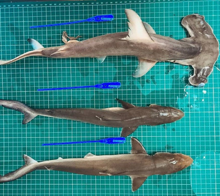 As equipes identificaram um deles como sendo um tubarão-martelo (do gênero Sphyrna) e os outros dois da espécie conhecida como cação-frango (Rhizoprionodon lalandii). O Gremar apontou que, lamentavelmente, a captura desses tubarões também se destina à venda de outros itens, como suas barbatanas, o óleo do fígado e seu couro.