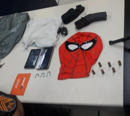 Com eles, segundo o batalhão de Itaperuna, foi encontrado um revólver calibre 45 e seis munições intactas, uma pistola de choque taser, um molho de chaves da casa do idoso, dois aparelhos celulares e duas máscaras, uma delas do Homem-Aranha.