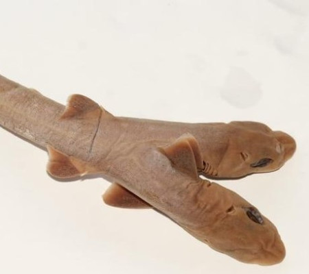 Um tubarão de duas cabeças foi encontrado por pescadores no litoral de São Paulo, entre Itanhaém e Peruíbe. O animal tem também duas colunas vertebrais, dois corações e dois fígados. As informações são do UOL.