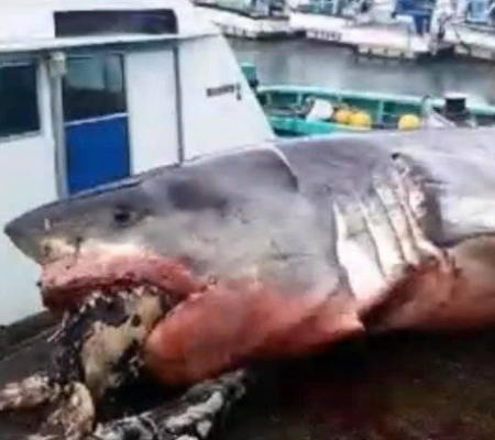 Um pescador ficou impressionado depois de encontrar um tubarão gigante morto com uma tartaruga marinha entalada na garganta, enquanto pescava atuns no Japão. Greg Vella compartilhou as imagens do animal em um grupo de pescadores no Facebook. As imagens receberam milhares de compartilhamentos e curtidas em poucas horas. Os outros pescadores que presenciaram a cena ainda afirmaram que o animal “parecia com a morte” e que morreu engasgado com a tartaruga . "Os pescadores comerciais ficaram chateados porque os tubarões-brancos não incomodam a pesca comercial e, com certeza, incomodam as coisas que comem a nossa pesca”, lamentou Vella.