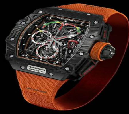 Parte da estrutura deste super-relógio, desenvolvido de forma praticamente artesanal, é feita com grafeno, um material seis vezes mais leve e 200 vezes mais resistente que o aço. Outras partes da carcaça do relógio também são tão nobres quanto e contam com titânio e fibra de carbono. Além de marcar as horas, o RM 50-03 também conta com um cronógrafo especial para você tomar o tempo de volta a bordo de um McLaren em qualquer autódromo.