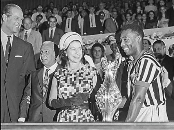 "Diz para ela que estou emocionado por ter participado de um jogo que contou com a sua presença", pediu Pelé, meio sem jeito, ao intérprete real. "Diga para ele que a felicidade é minha", respondeu a rainha, com outro sorriso.