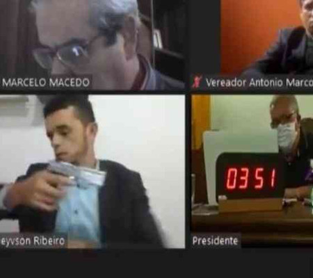 O vereador Deyvson Ribeiro (Solidariedade) foi flagrado pegando uma arma de dentro de uma bolsa e limpando-a durante uma sessão da Câmara de Mariana (MG). A reunião estava sendo transmitida ao vivo no Facebook. As informações são do UOL.