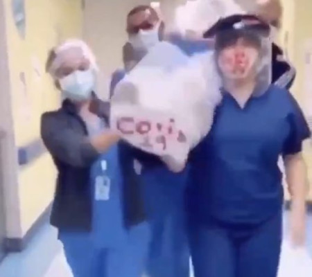 Um vídeo que mostra profissionais da saúde carregando um corpo que tem escrito nos pés Covid-19 dentro de um hospital está reverberando na internet. Isso, que parece ser uma "brincadeira", está gerando polêmica na internet. As informações são do IG.