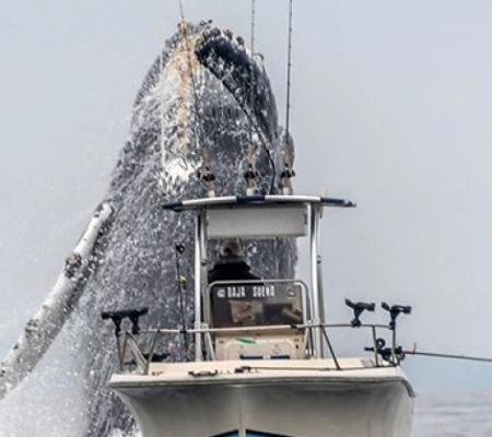 As fotos, capturadas por Douglas, mostram a baleia surgindo das águas perto de um barco de pesca, onde um pescador desavisado chamado Baja Sueno se encontrava. "A baleia é enorme! Se eu fosse o pescador, provavelmente, precisaria de uma cueca nova", disse o fotógrafo que capturou esse momento incrível.