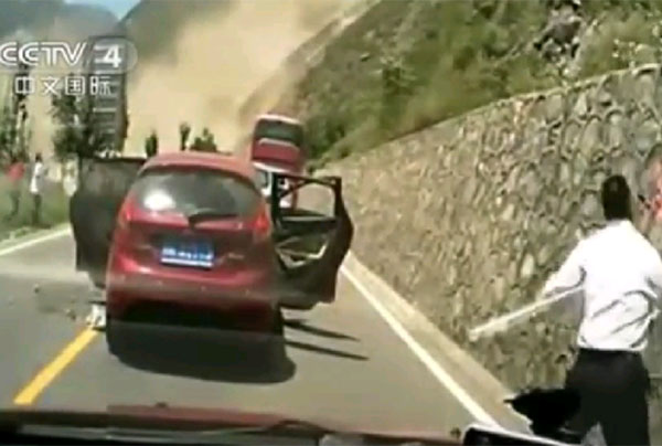 Mas pensamentos e ?treinamentos mentais? à parte, tenho certeza que você nunca pensou em passar por uma situação como essa que aconteceu na China, onde um vídeo de um veículo registrou o momento em que rochas gigantes e pedras começam a cair em uma estrada, veja :