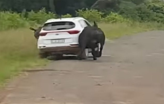 Com mais de 130 mil visualizações em apenas 19 horas de publicada, a gravação flagra o momento em que um carro está parado próximo a dois búfalos e quando resolve deixar o local, recebe a investida de um dos animais, que consegue por poucos segundos tirar uma das rodas do chão.