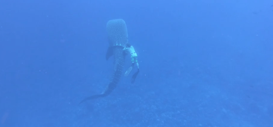Enquanto mergulhava livremente na costa de Kaunolu, na ilha de Lanai no Havaí, uma família havaiana ficou surpresa ao encontrar um jovem tubarão baleia. Como sabemos, os tubarões são os maiores predadores do mar. No entanto os mergulhadores não se sentiram ameaçados com a presença do tubarão. Pelo contrário, eles ficaram maravilhados com a visão rara, já que o animal está em extinção.