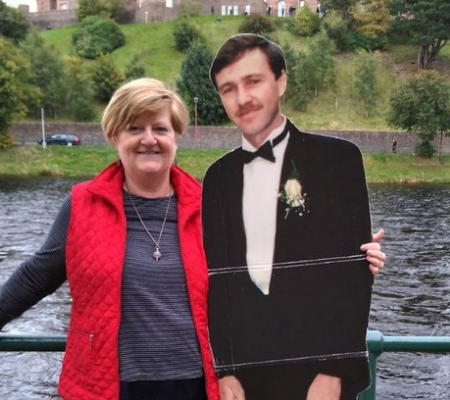 Michelle Bourke, de 58 anos, viaja pelo mundo com um pedaço de papelão do seu falecido marido para honrar a promessa de que iriam viajar juntos. A viúva encomendou uma imagem em tamanho real de Paul Bourke, baseada em uma fotografia de seu casamento há quase 30 anos, após sua morte por câncer aos 61 anos em 2016.