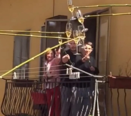 Quem quer arruma um jeito. Quem não quer arruma uma desculpa! Sorte que esses vizinhos italianos deram um jeito – super criativo por sinal – de fazer um brinde à distância, cada qual em sua varanda. As informações são do Razões para Acreditar.